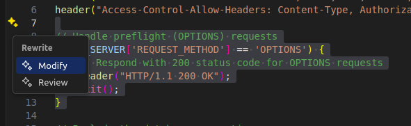 For quick interactions, simply highlight the section of code you’re working on and press Cmd+I (Mac) or Ctrl+I (Windows/Linux).